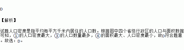 下图为我国四个省级行政单位的人口与面积柱状图,下列说法正确的是