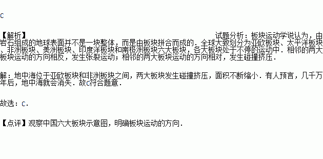根据板块构造学说,地中海的面积将会越来越小,直至消失,原因是