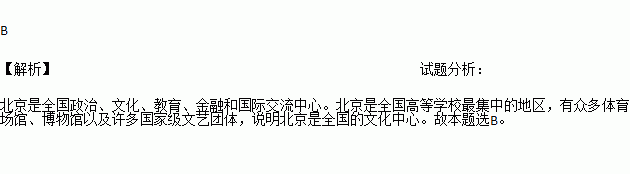 北京是全国高等学校最集中的地区,有众多体育场馆、博物馆以及许多国家级文艺团体,说明北京是全国的 ( )
