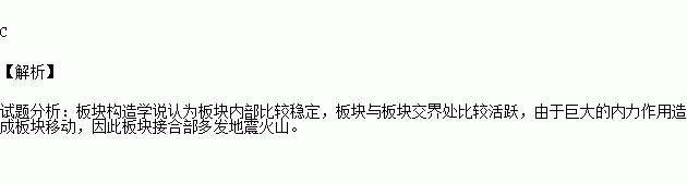C、板块碰撞地区火山地震活动频繁 D、全球地壳共分七大板块