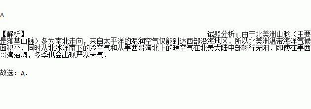 A. 落基山阻挡了太平洋的暖湿气流 B. 极地冷空气势力强