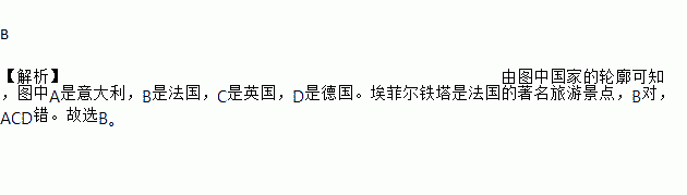 下图中,著名的旅游景点艾菲尔铁塔所在的国家是( )