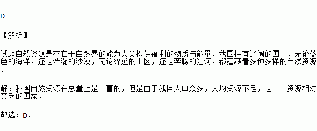D. 总量丰富,但因人口特别多,人均占有量就很少