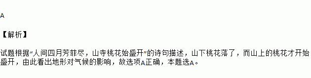 “人间四月芳菲尽,山寺桃花始盛开”这首诗句所描述的自然现象的主要成因是( )