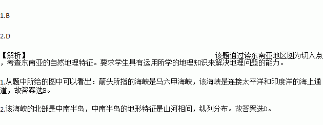 1.图中箭头所指的海峡是 ,该海峡是连接太平洋和 洋的海上通道。( )