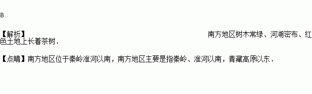 C. 这里树木常绿、河湖密布、红色土地上长着茶树