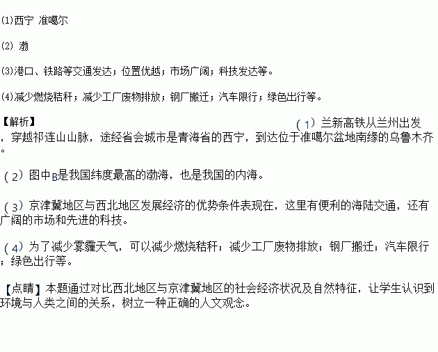 (1)À¼Ð¸ßÌú´ÓÀ¼Öݳö·¢£¬´©Ô½ÆîÁ¬É½Âö£¬Í¾¾¶Ê¡»á³ÇÊÐ________£¬µ½´ïλÓÚ________ÅèµØÄÏÔµµÄÎÚ³ľÆë¡£