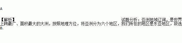 按地理方位,将亚洲分为六个地区,我们所在的地区是: