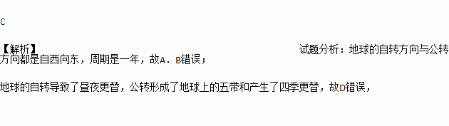 A. 地球公转与地球自转的方向一样,都是自东向西