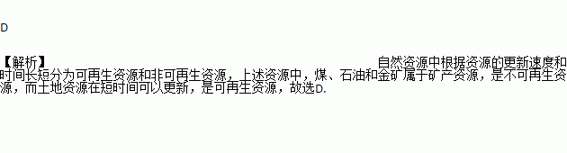 A. 煤 B. 石油 C. 金矿 D. 土地