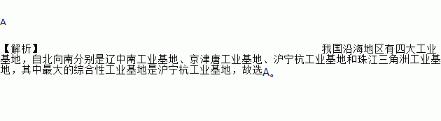 A 【解析】我国沿海地区有四大工业基地,自北向南分别是辽中南工业基地、京津唐工业基地、沪宁杭工业基地和珠江三角洲工业基地,其中最大的综合性工业基地是沪宁杭工业基地,故选A。
