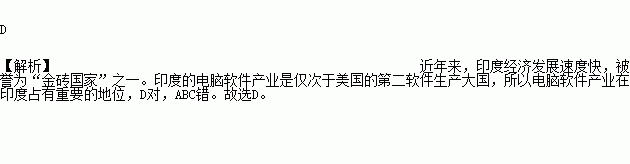 近年来,印度经济发展速度快,被誉为“金砖国家”之一。该国在世界上占有重要地位的产业是
