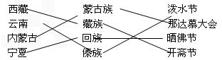 将下列少数民族与其主要分布的省区以及风俗节庆用线连接起来.