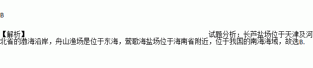 长芦盐场、舟山渔场、莺歌海盐场分别位于( )