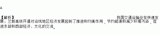 A 【解析】我国交通运输业在快速发展,兰新高铁开通对沿线地区经济发展起到了推进和均衡作用,节约能源和减少环境污染,促进东部和西部经济、文化的交流。
