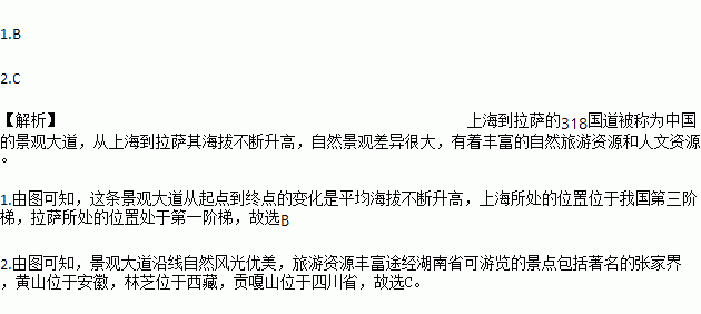 上海到西藏樟木的318国道,被称为“中国人的景观大道”,读“中国人的景观大道图”,完成下列各题