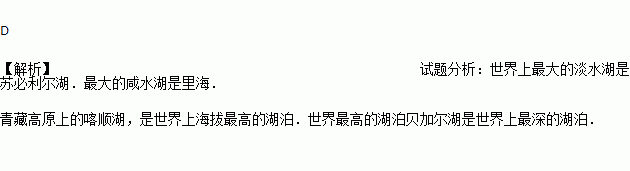 A. 世界最大的淡水湖 B. 世界最大的咸水湖