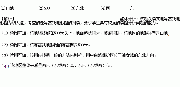 (3)图中自然保护区位于神女峰的_________方向。