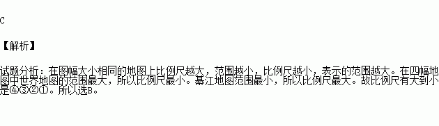 教室里贴有4幅大小一样的地图,按比例尺由大到小排列的是