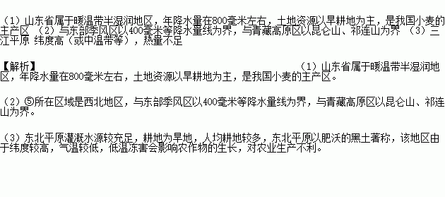 (1)根据图中信息,说明山东省的自然条件及农业生产特点。