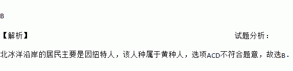 B 【解析】试题分析: 北冰洋沿岸的居民主要是因纽特人,该人种属于黄种人,选项ACD不符合题意,故选B.