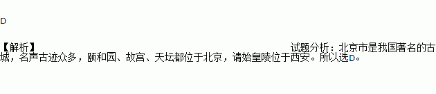A. 颐和园 B. 故宫 C. 天坛 D. 秦始皇陵