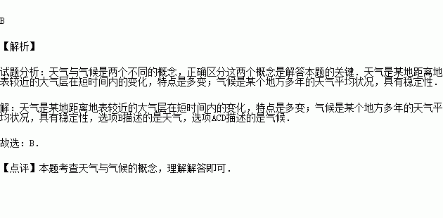 下列句子中,描述天气的是( )