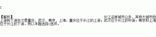 长江沿江四大城市从上游到下游的排序,正确的是:( )