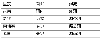 看东南亚各国政区图完成下表。