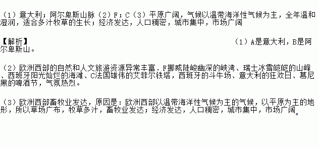 (3)请从自然条件和社会条件两方面分析欧洲西部畜牧业发达的原因:自然条件:________社会条件:________.