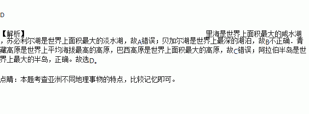 C. 青藏高原是世界最大的高原 D. 阿拉伯半岛是世界最大的半