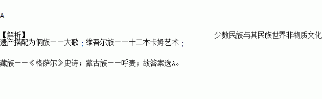 C. 藏族——木卡姆艺术 D. 蒙古族——《格萨尔》史诗