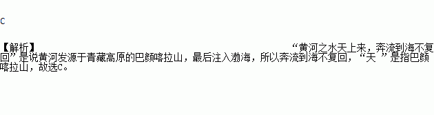 唐代诗人李白的诗句“黄河之水天上来,奔流到海不复回”,这里的“天上”指( )