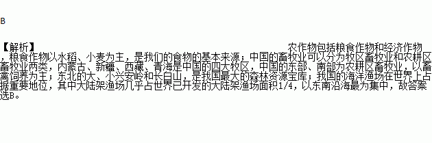 A. 我国的粮食生产以小麦、水稻为主 B. 我国的畜牧业生产只分布在四大牧区