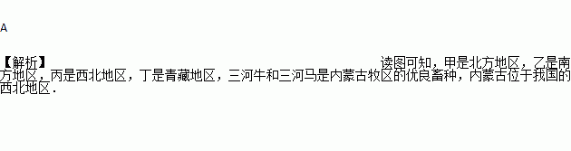 “我的家乡地形平坦,一望无垠,水草丰茂,以生产三河牛和三河马而闻名。”这是小敏对家乡的描述。猜一猜小敏的家乡在上图中的哪个区域( )