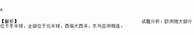 A 【解析】试题分析:欧洲绝大部分位于东半球,全部位于北半球,西临大西洋,东与亚洲相连。