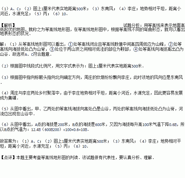 (4)周庄与李庄两处乡村聚落,更容易发展成集镇的是 。