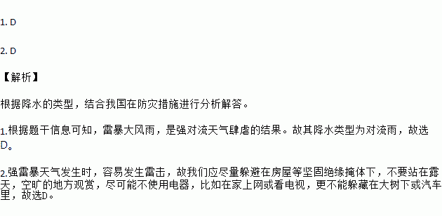 1.据材料可知,这次华南雷暴天气的降水类型主要是