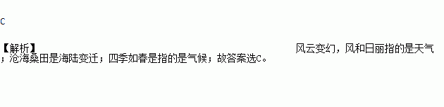 A. 风云变幻 B. 沧海桑田 C. 四季如春 D. 风和日丽