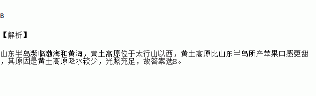黄土高原比山东半岛所产苹果口感更甜,其原因是( )