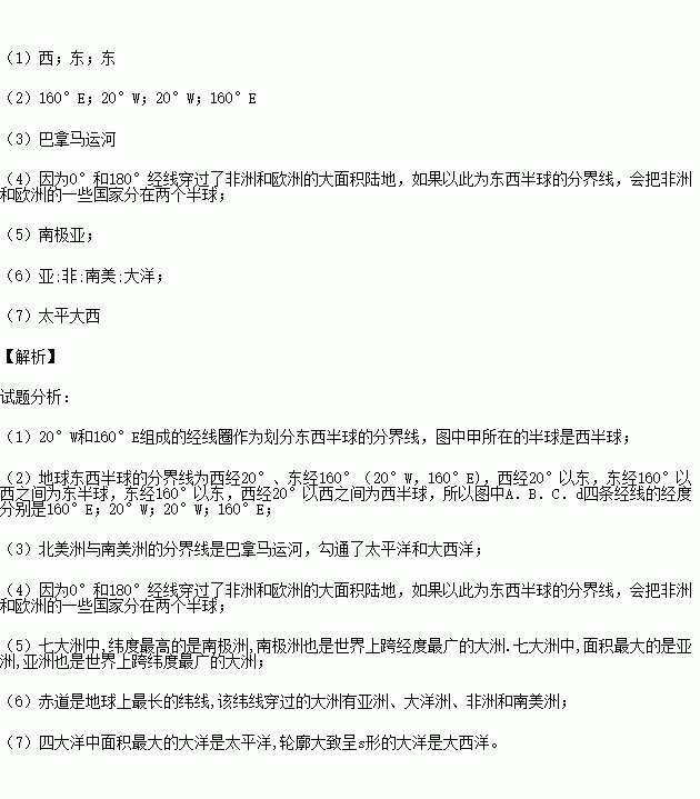 (4)简要说明:为什么不以0°经线与180°经线构成的经线圈作为东西半球的分界线?