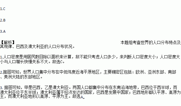 2.从世界人口分布图中可以看出,世界人口稠密地带主要位于( )