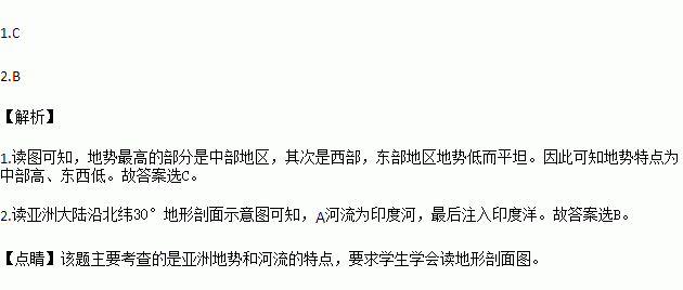 读亚洲大陆沿北纬30°地形剖面示意图,完成下面小题