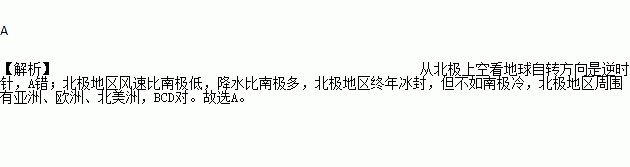 D. 北极地区周围有亚洲、欧洲、北美洲