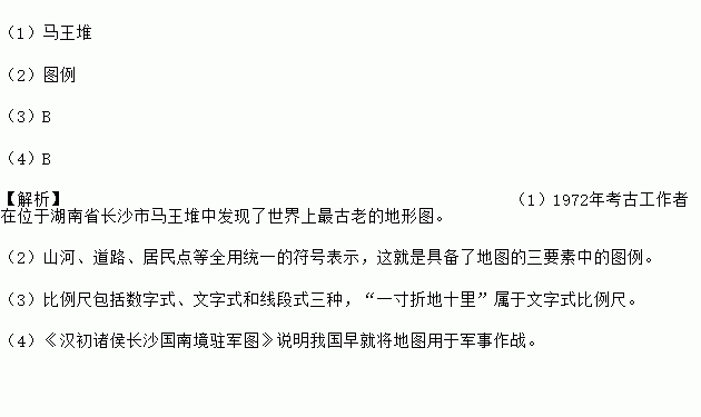 (1)1972年考古工作者在位于湖南省长沙市 ________ 中发现了世界上最古老的地形图.