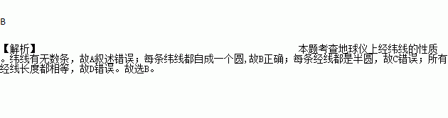 地球仪上经纬线的说法,正确的是( )