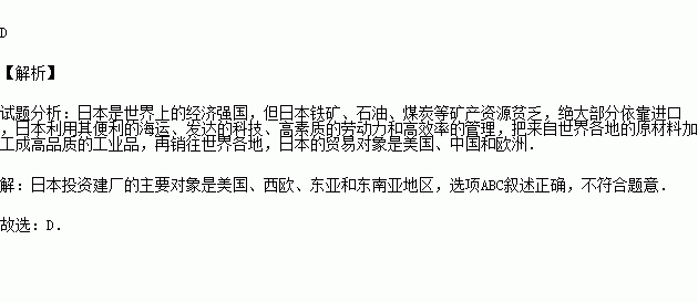D.建立了许多海外生产与销售基地,投资建厂的主要对象是非洲、南美洲