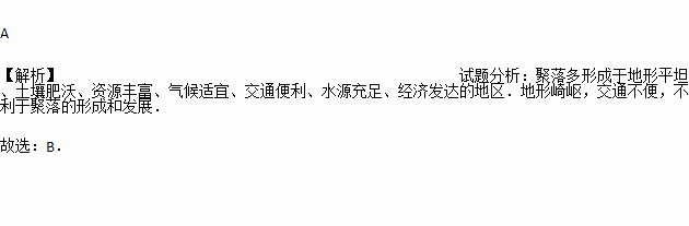 A. 水源充足 B. 地形崎岖 C. 交通便利 D. 资源丰富