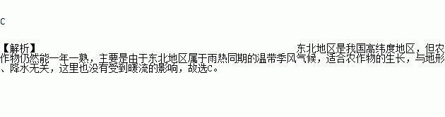 东北地区是我国高纬度地区,但农作物仍能一年一熟的原因是( )