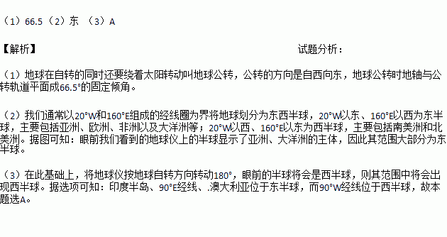 (2)眼前我们看到的地球仪上的半球范围大部分为____________(东或西)半球。